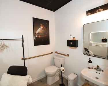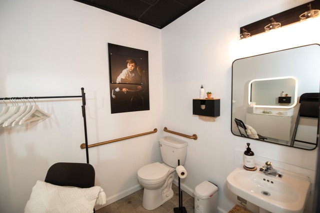 Private dressing room/lounge area with additional restroom, perfect for hosts or performers